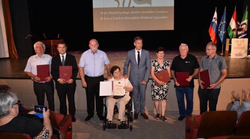 Medobčinsko društvo invalidov Lendava je včeraj v Gledališki in koncertni dvorani slovesno obeležilo svojo 50. obletnico delovanja. Podeljena so bila priznanja za dolgoletno sodelovanje ter za prizadevno in uspešno delo. Zbrane so nagovorili predsednik Medobčinskega društva Jožef Gjerek, predsednik Zveze delovnih invalidov Slovenije Peter Bršek in župan Občine Lendava Janez Magyar. Prireditev se je odvila ob nastopih recitatork Gabrijele Peček in Jerice Trojak ter članov Folklornega društva Prekmurje Lendava, prireditev pa so zaključili s humorističnim skečem, ki so ga pripravili člani društva.