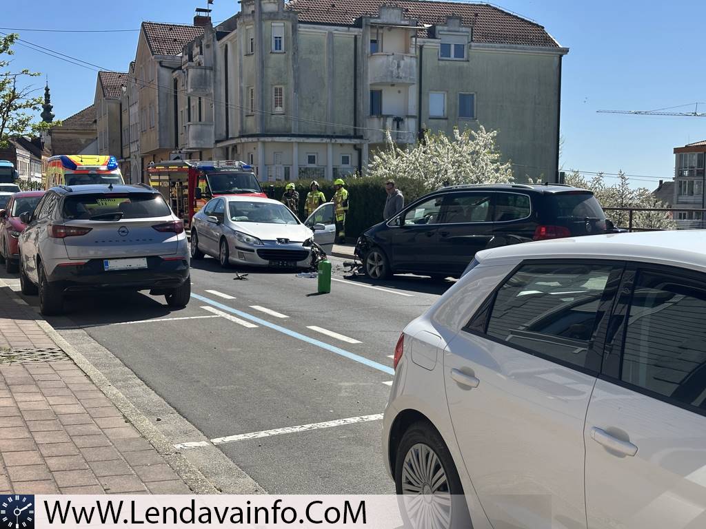 Danes popoldan, okrog 13.15 ure, se je na Glavni ulici v Lendavi pripetila prometna nesreča z udeležbo dveh osebnih vozil. Prometna nesreča naj bi se, neuradno, zgodila zaradi nepravilnega prehitevanja. Nastala je večja gmotna škoda, dve osebi sta bili prepeljani v bolnišnico, cesta pa je med Glasbeno šolo Lendava in križiščem za Slomškovo naselje bila povsem zaprta.