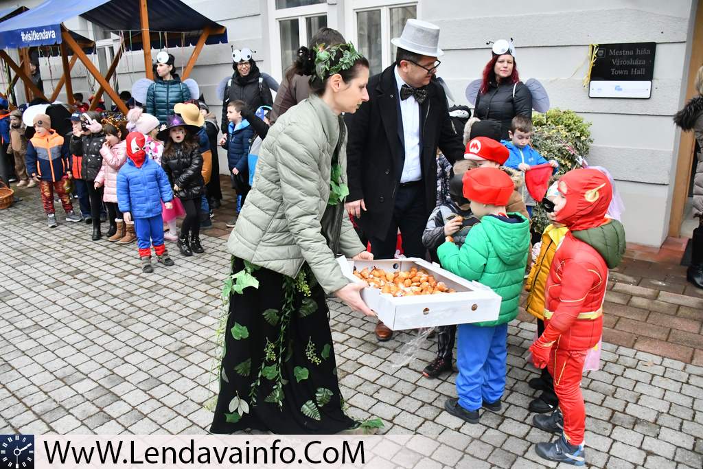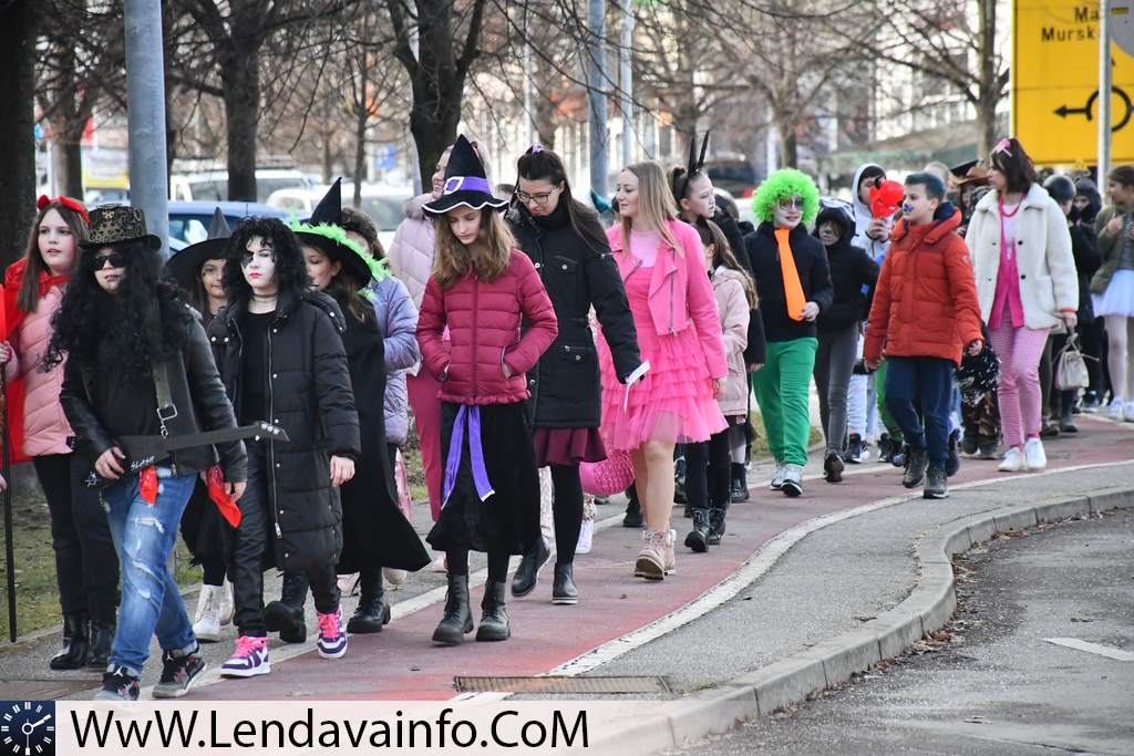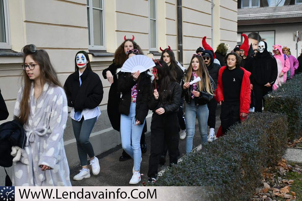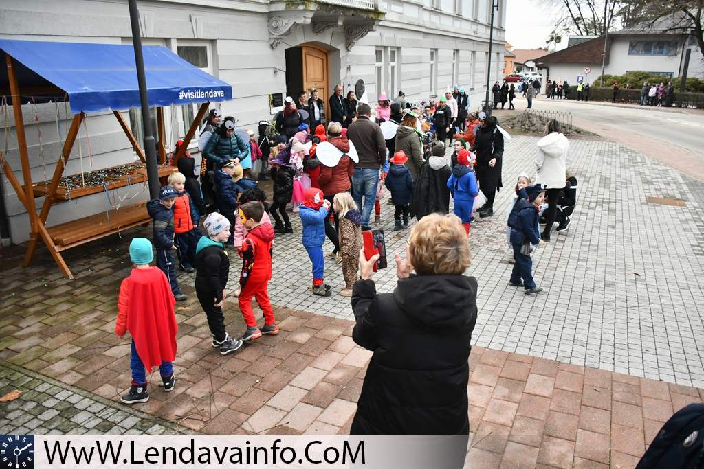 Otroci Vrtca Lendava, učenci Dvojezične osnovne šole I Lendava in Dvojezične osnovne šole II Lendava ter dijaki Dvojezične srednje šole Lendava so se na pustni torek našemljeni sprehodili po mestu Lendava, a še pred tem so otroci obiskali mestno hišo, kjer so jih že čakali koranti društva Koranti Petovio iz Ptuja. Pred Mestno hišo so se vsi prisotni lahko posladkali s krofi.