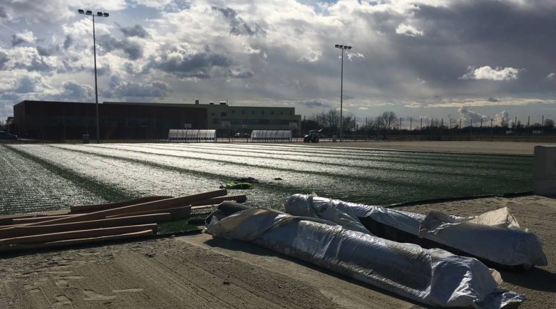 FOTO: Včeraj pričeli s polaganjem umetne trave