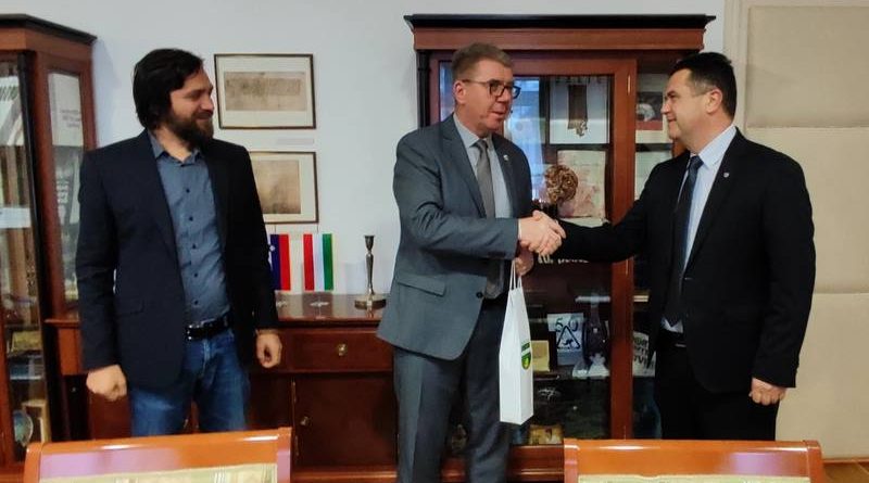 V prostorih Občine Lendava sta se včerajšnji popoldan srečala Dražen Srpak, poslanec v hrvaškem Saboru ter župan mesta Mursko Središće in župan Občine Lendava, Janez Magyar. Razlogov za obisk je sicer bilo več. Uvodoma je Srpak Magyarju čestital za vnovično izvolitev, za tem pa sta se dotaknila raznih aktualnih tem s področja čezmejnega sodelovanja. Med drugim je namen obiska bil tudi pogovor o skupni proslavi ob vstopu Republike Hrvaške v schengensko območje, kar se bo zgodilo prvi januarski dan ob polnoči.