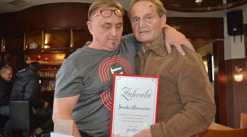 O samem dogodku in o tem, kako je Dervarič reševal sodržavljana, ki ga prej ni poznal, smo že poročali, sedaj, ko je prišel iz bolnišnice, pa se nam je oglasil tudi Jože Genc, ki je mimogrede zaposlen na Eko kmetiji Korenika v Šalovcih, občasno pa je tudi snemalec – kamerman pri nekaterih produkcijskih družbah. Želel si je predvsem, da bi spremljali njegovo spoznavanje in srečanje z rešiteljem Stankom. Želel je predvsem, kot je dejal, svojega angela varuha objeti, mu stisniti pest in se mu zahvaliti, da je danes še med živimi. In njuno srečanje in spoznavanje v okrepčevalnici “Marjanca” v Gornji Radgoni je bilo več kot čustveno, prisrčno in ganljivo, obojestransko je kanilo tudi nekaj solz. Jože je seveda bil srečen, da že ni pokopan, Stanko pa, da je lahko prijaznemu in očitno dobrosrčnemu neznancu, ki je imel začasno smolo, rešil življenje. “Šele čez dva tri dni mi je postalo jasno, da je šlo za veliko zadevo in sem se zavedal, da bi lahko tudi sam umrl v mrzli vodi. Sedaj sem seveda vesel in zadovoljen, da se je vse dobro končalo, še zlasti, da sem lahko pomagal,” je skromno dejal Dervarič, ko je iz rok svojega rešenca prejel lično oblikovano zahvalnico, na kateri je Jože dobesedno zapisal: “Zahvalnica Stanku Dervarču, za pogumno in nesebično pomoč pri prometni nesreči, ko mi je rešil življenje! Radenci, 6.1.2020.”