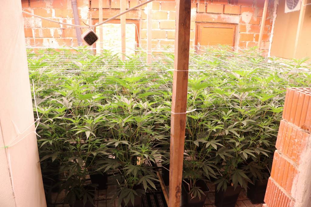 Med preiskavo so odkrili dva posebej prirejena prostora za gojenje prepovedane droge konoplje. V prostorih je bilo zaseženih skupno 220 rastlin zelene barve različnih velikosti ter številni pripomočki za umetno gojenje, kot so sistemi za osvetlitev, prezračevanje in drugi tehnični elementi, namenjeni pospeševanju rasti.