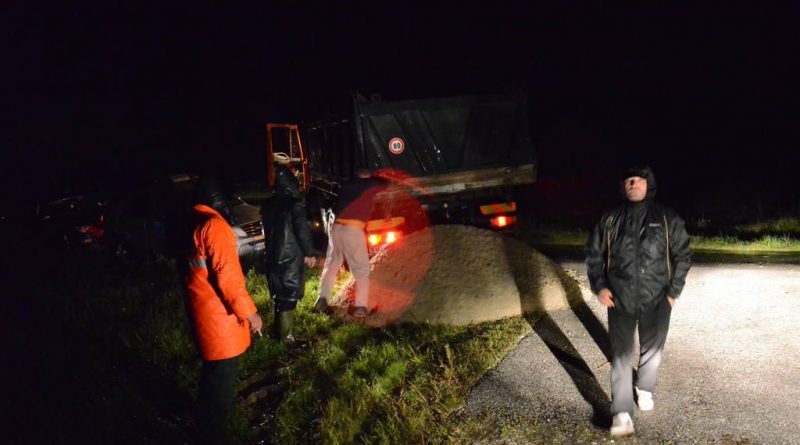 Zvečer pripeljali pesek in vreče v Banuto ter v Mostje
